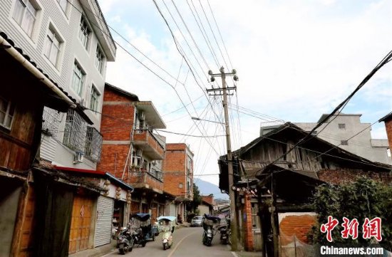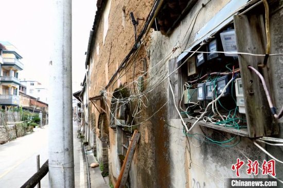 图为村内用电线路等老化严重、杂乱无章。 张翼 摄
