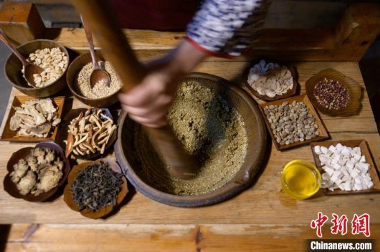 “喝擂茶,人一定要多。”福建省三明市泰宁县福堂巷中,擂棍在擂钵中研磨草药的声音回响不绝,“80后”客家女李华一边手持擂棍制作擂茶,一边给食客细细讲解客家擂茶。